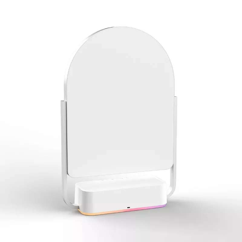 Le fabricant de LED de miroir lumineux de salle de bains synst (Chine) est situé dans la ville de Houjie, ville de Dongguan, province du Guangdong. Notre usine est équipée d'un atelier climatisé, d'équipements de production avancés et d'équipements d'inspection pour garantir que la qualité de chaque produit peut répondre à vos besoins. Ce miroir de salle de bain LED utilise un design de suspension innovant, le haut-parleur Bluetooth est situé en dessous, la partie miroir est suspendue au-dessus, ce design donne à la salle de bain une atmosphère simple de beauté moderne. Sa fonction unique de rotation à 360 degrés vous permet de vérifier soigneusement chaque détail de votre visage lorsque vous vous lavez le matin pour vous assurer que votre peau est propre et exempte de résidus ; Lorsque vous vous maquillez, vous souhaitez examiner l'effet global de votre maquillage sous différents angles pour vous assurer que tout est exquis et parfait, et qu'il peut facilement répondre à vos besoins. Il vous suffit de tourner doucement le miroir et il vous offre la meilleure vue, vous permettant de mieux observer les détails dont vous avez besoin.