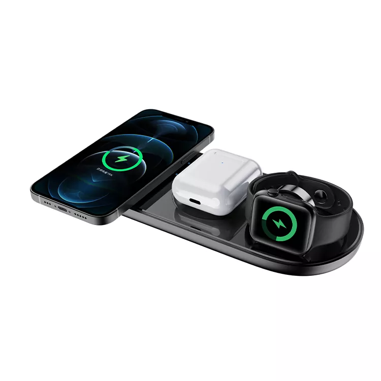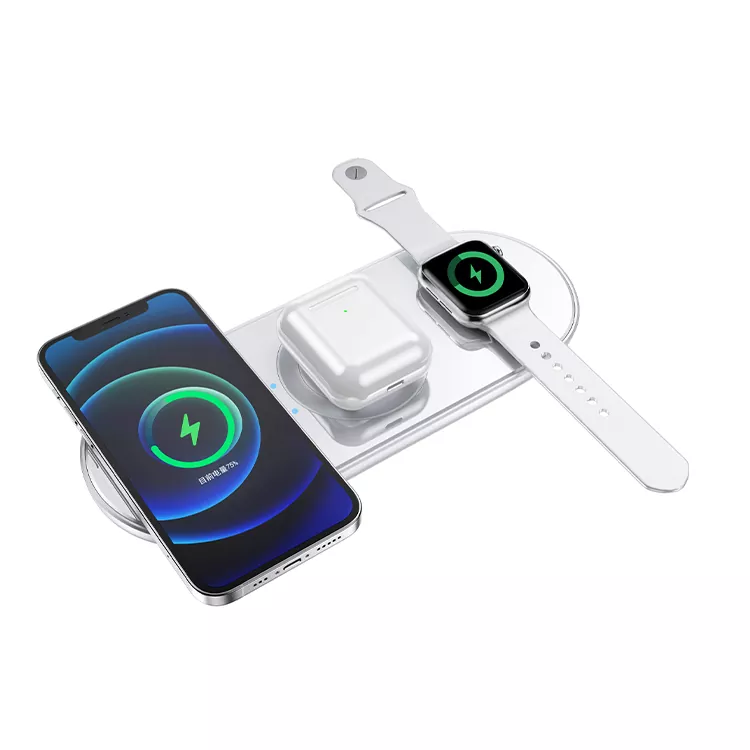 Ce chargeur sans fil plat 3 en 1 de SYNST (Chine) est spécialement conçu pour le mode d'alimentation de maintien. Lorsque vous dormez la nuit, placez l'appareil sur le chargeur sans fil pour le charger, il passera automatiquement en état d'alimentation de maintien. Ce mode peut garantir que l'appareil est complètement chargé en même temps, protéger efficacement l'alimentation électrique et éviter les dommages à la batterie causés par une surcharge. En termes d’induction de charge, ce chargeur sans fil est également performant. Il a une distance de détection allant jusqu'à 6 mm, et même si votre appareil dispose d'une coque de protection d'une certaine épaisseur, il peut facilement détecter et commencer à charger. En même temps, il a une vitesse d'induction de charge rapide et une fréquence stable, ce qui peut garantir un processus de charge efficace et stable. Que vous chargez tout en utilisant votre téléphone ou un autre appareil, celui-ci ne sera pas dérangé, vous offrant une expérience de chargement fluide.