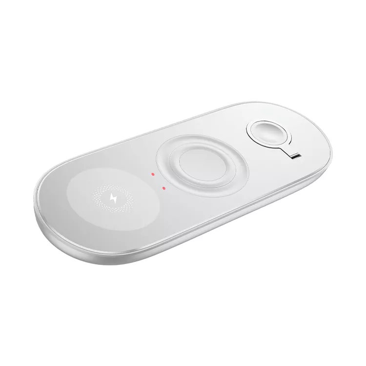 SYNST, un fabricant chinois, a lancé un chargeur sans fil plat 3 en 1. Dans la conception de l'apparence, nous prenons pleinement en compte les besoins esthétiques et les sentiments d'utilisation de l'utilisateur, en vous proposant un blanc simple et un noir stable. Il utilise un matériau ABS + PC, qui a non seulement une bonne durabilité et stabilité, mais donne également au chargeur sans fil une sensation de douceur. Cette touche confortable peut vous rendre heureux pendant l'utilisation, mais reflète également notre recherche ultime des détails du produit. Ce chargeur sans fil plat 3-en-1 utilise une conception légère, globalement compacte et fine. Vous pouvez facilement le mettre dans votre poche, votre sac à dos ou votre sac à main et charger votre appareil à tout moment et en tout lieu. Que ce soit lors de voyages d'affaires, de voyages ou de sorties quotidiennes, c'est une bonne aide pour vous ressourcer. Pour le chargement de la montre, il propose deux méthodes de chargement : vous pouvez soit poser la montre à plat sur la charge sans fil, soit choisir de la mettre sur le côté. Cette conception flexible peut répondre aux besoins des habitudes et des scénarios des différents utilisateurs. Dans le même temps, la conception claire du voyant lumineux vous permet de connaître l'état de charge à tout moment. Lorsque votre appareil mobile commence à se charger, le voyant lumineux sera toujours bleu vif, afin que vous puissiez suivre la progression de la charge à tout moment.
